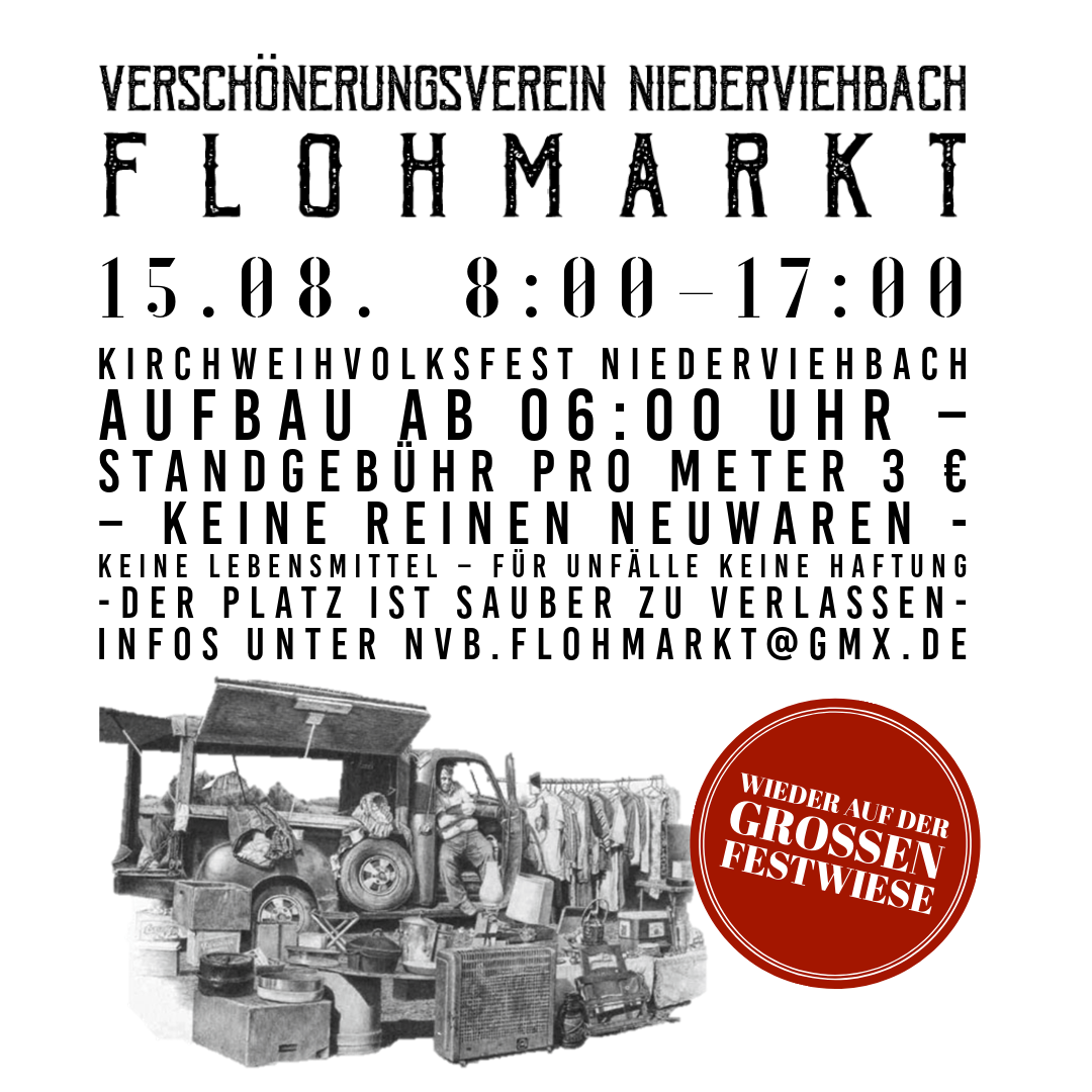 Am 15. August verwandelt sich die große Festwiese in Niederviehbach in einen lebendigen Marktplatz. Zwischen liebevoll Ausgewähltem und lange Bewahrtem lädt der Flohmarkt zum Stöbern und Verweilen ein. Wir freuen uns auf Ihren Besuch!